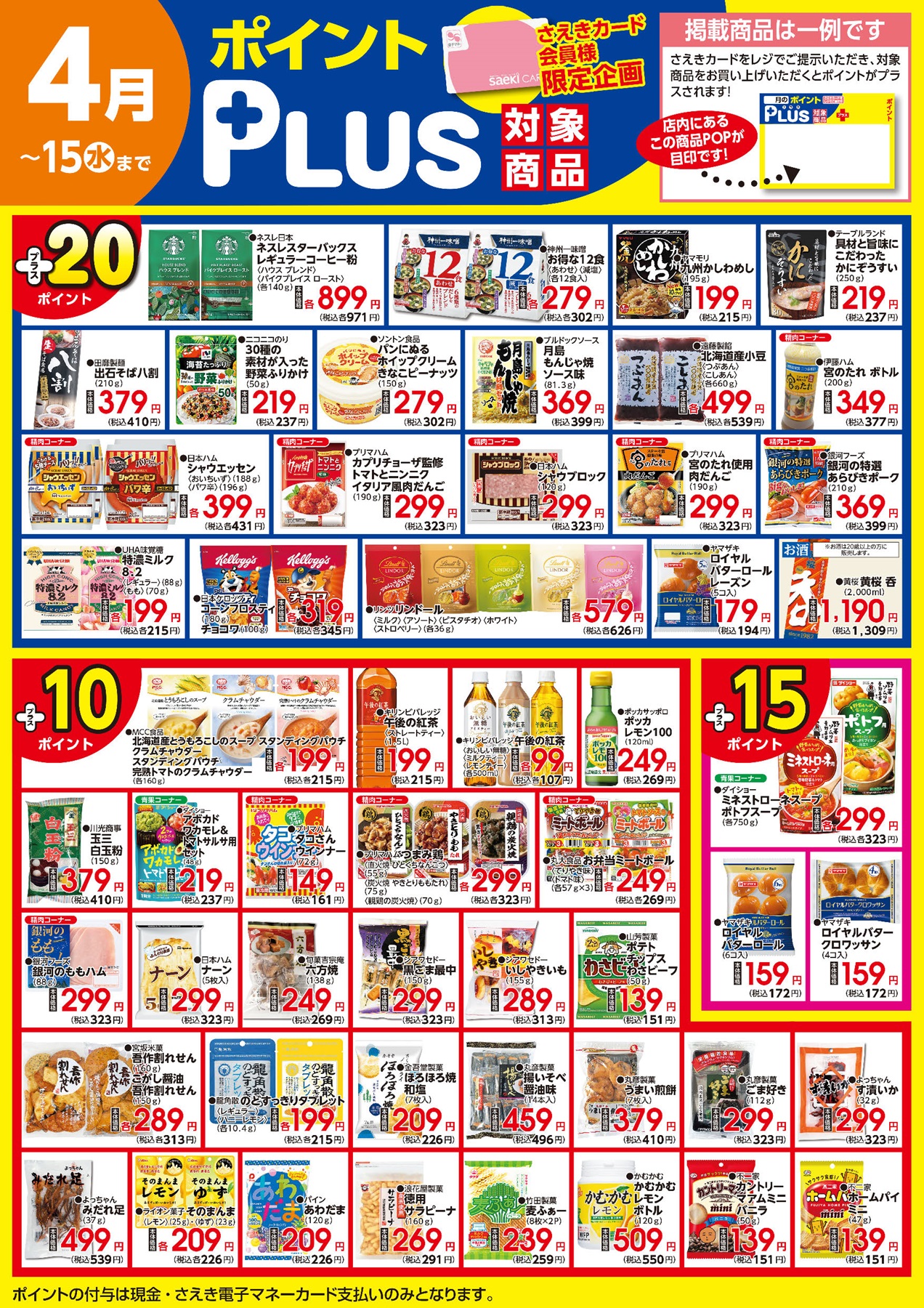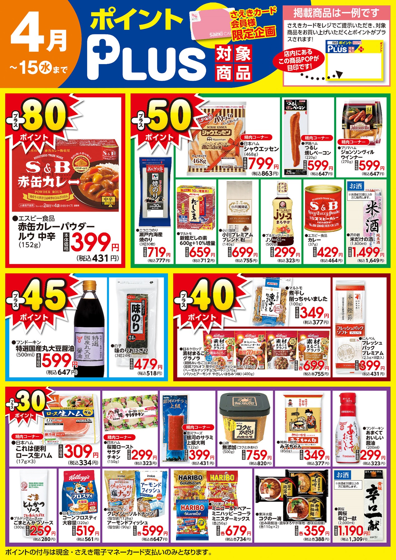 - 3月16日~4月15日 ポイントプラス(saekiカード会員様限定)