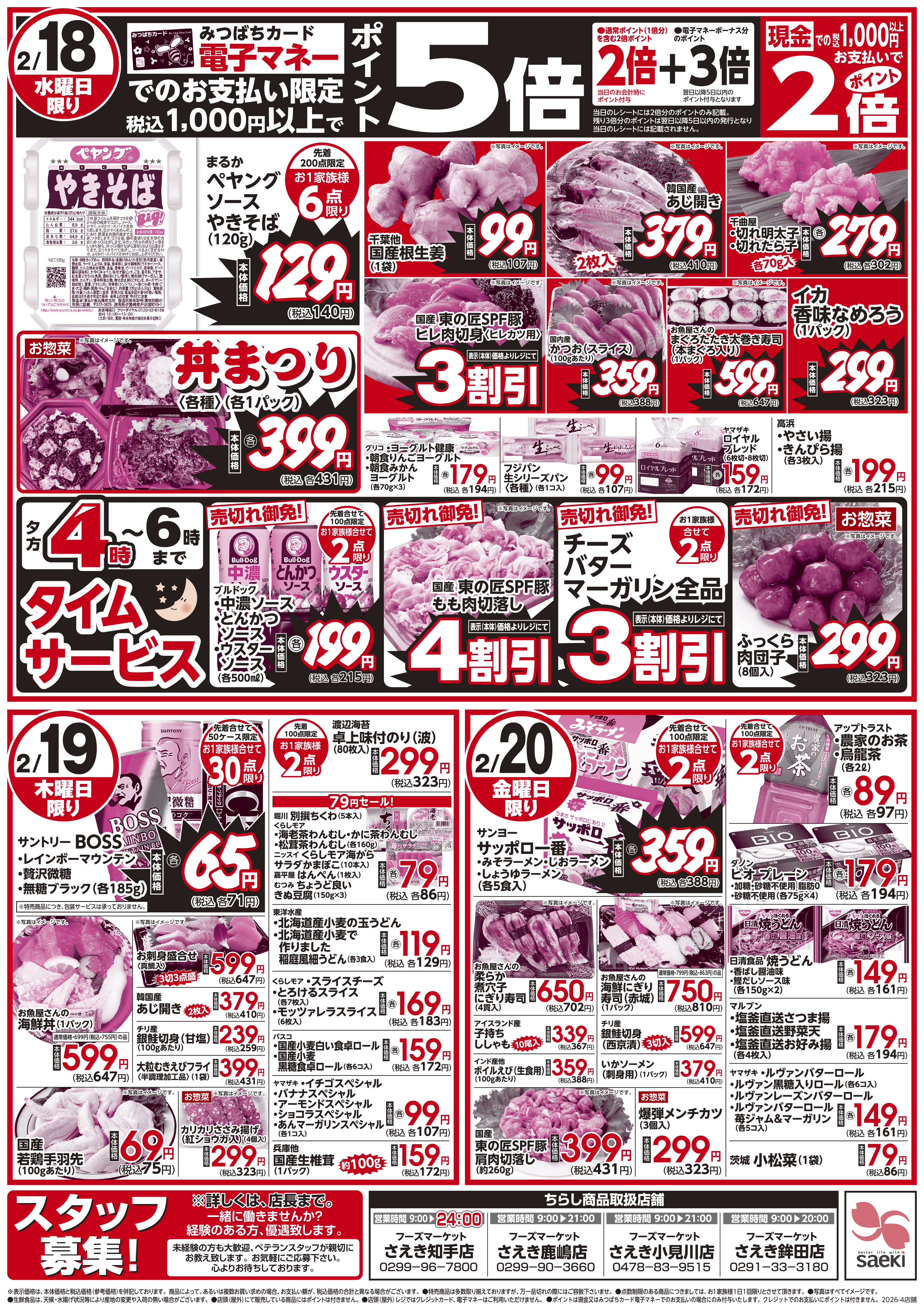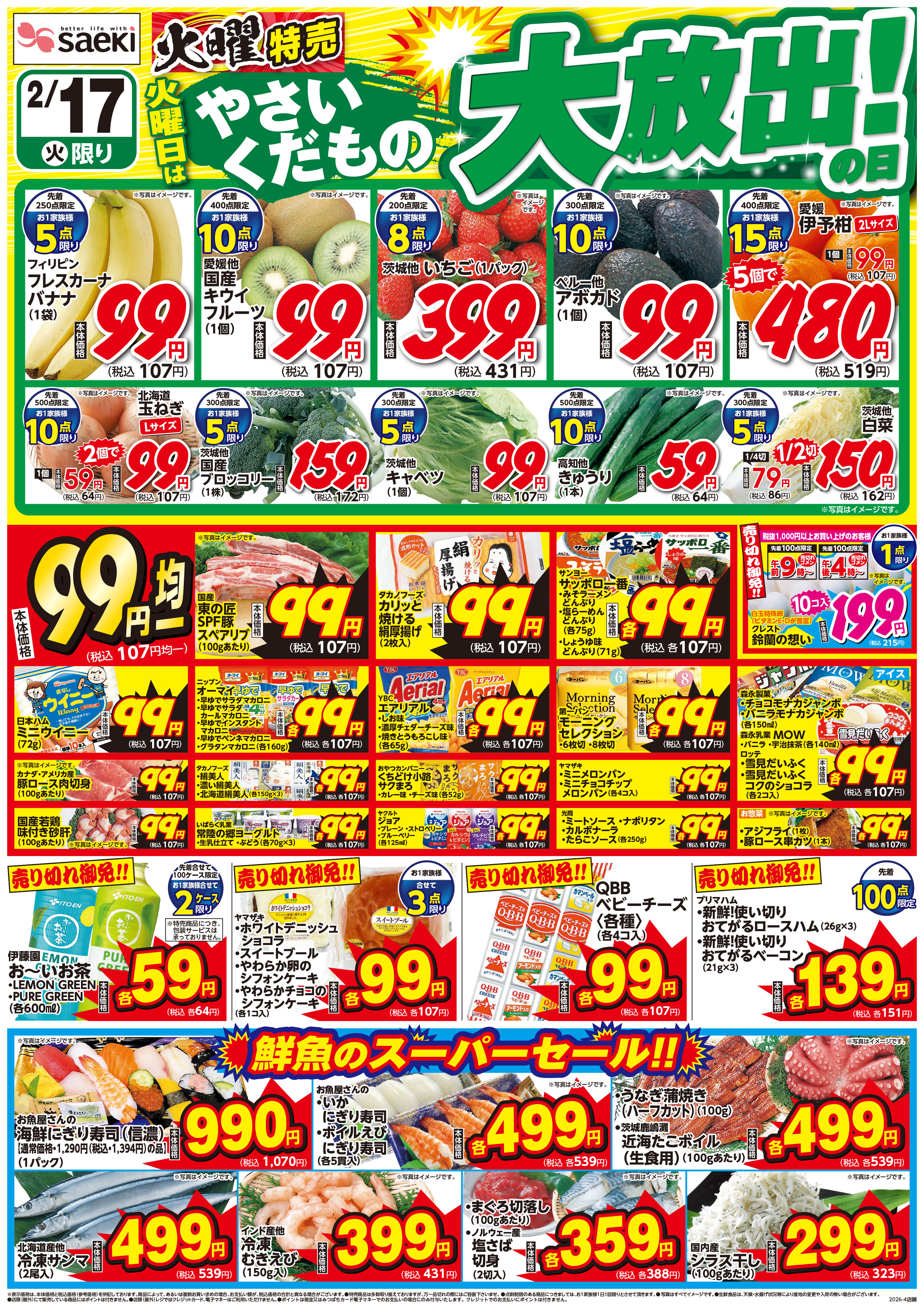 2月16日~2月20日 火曜特売 火曜日はやさいくだもの大放出!の日
