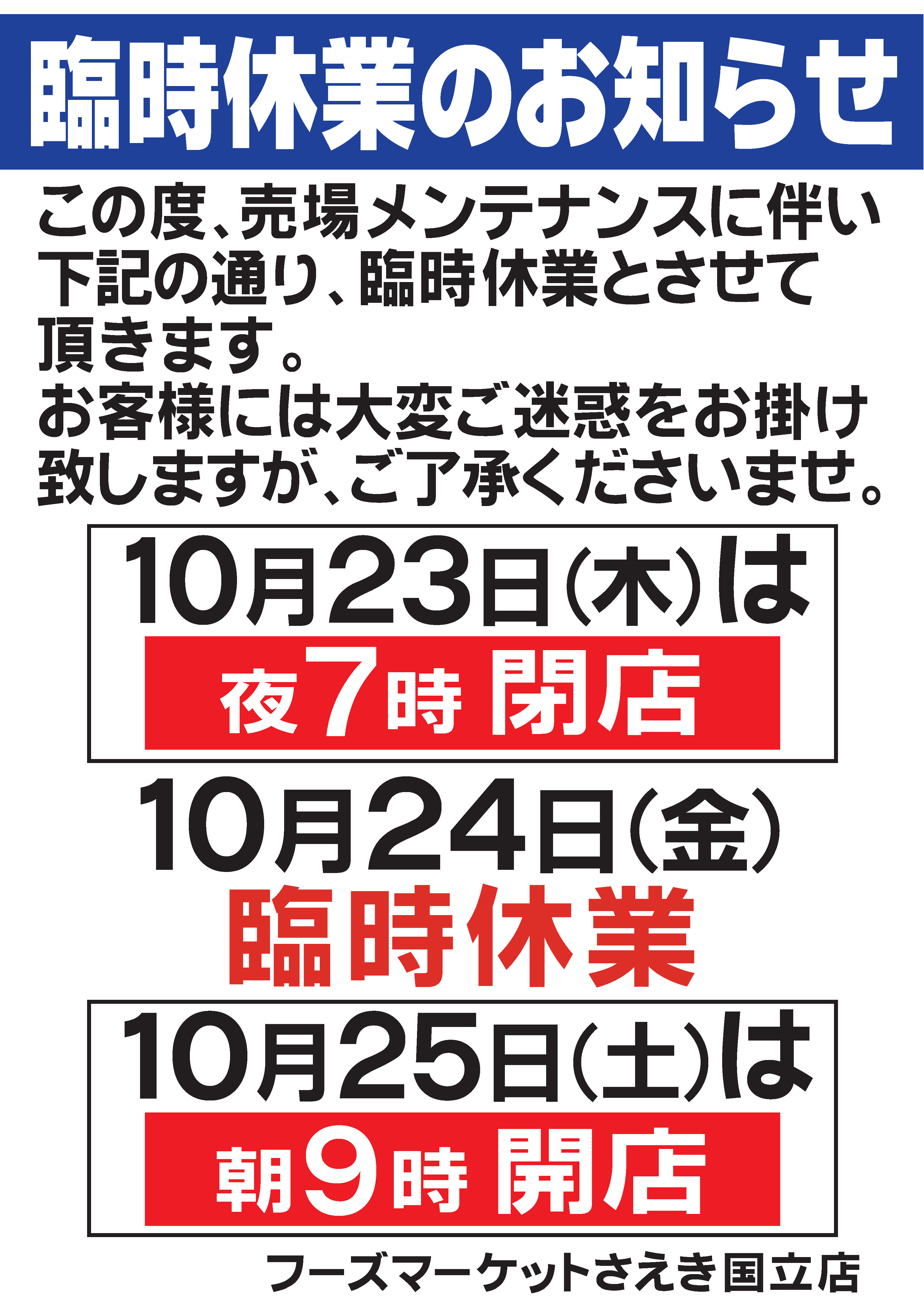 国立店 臨時休業のお知らせ
